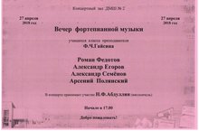 "ВЕЧЕР ФОРТЕПИАННОЙ МУЗЫКИ" УЧАЩИХСЯ КЛАССА ПРЕПОДАВАТЕЛЯ Ф.Ч.ГАЙСИНА 27.04.2018