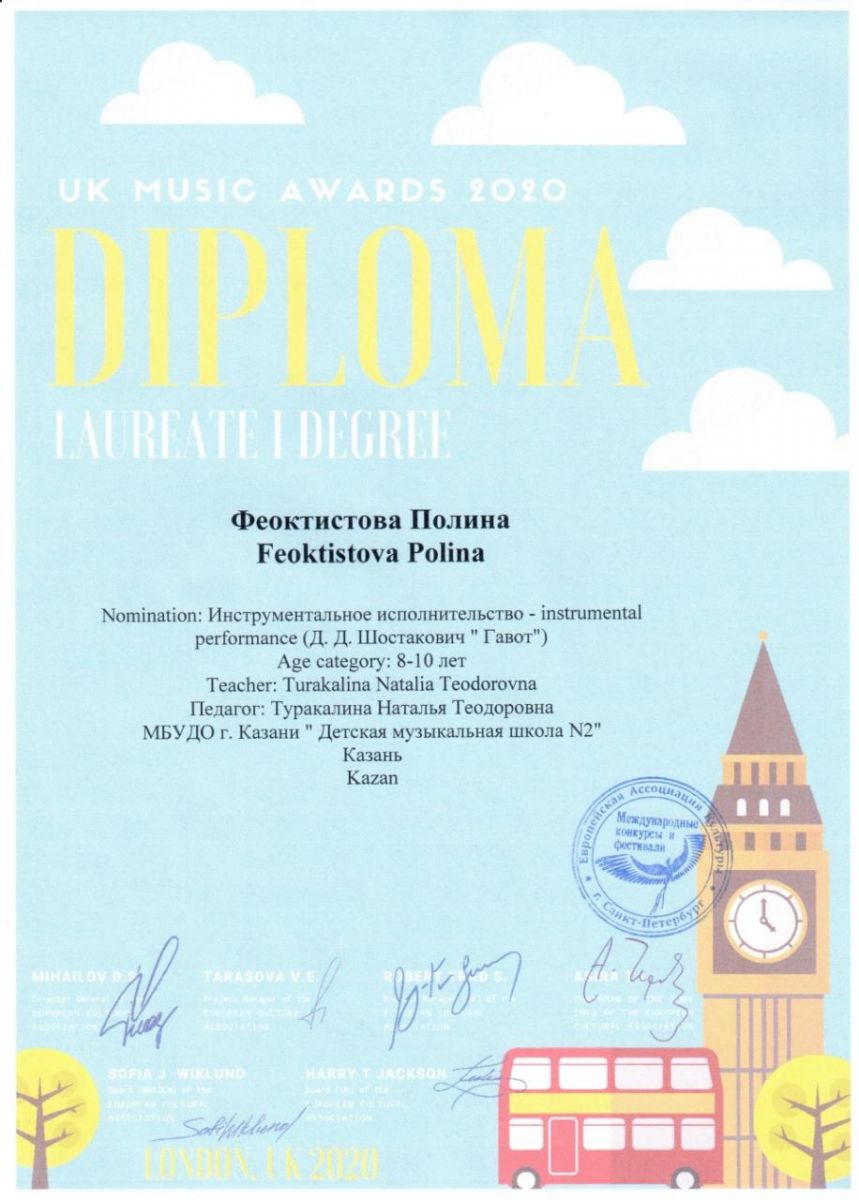 ПОЗДРАВЛЯЕМ ПОБЕДИТЕЛЯ МЕЖДУНАРОДНОГО КОНКУРСА "UK MUSIC AWARDS 2020"