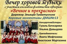 Вечер хоровой музыки с участием ансамбля флейтистов «Феерия», а также хоровых коллективов ДМШ №13 «Соловушки» и «Allegro».