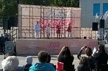 Выступление ансамбля "Радуга" в парке "Кырлай" на благотоворительной ярмарке "Помоги собраться в школу", педагог Тухватуллина Эльвира Ахатовна.