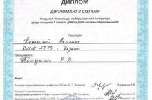 Поздравляем Кожакину Ангелину с победой в Открытой Олимпиаде по Музыкальной литературе среди учащихся 5 классов среди ДМШ и ДШИ системы образования РТ. Она стала дипломантом II степени, педагог Тимершина Резеда Дамировна. Поздравляем!!!