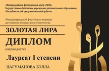 20 марта 2022 года в городе Казань прошёл Международный фестиваль-конкурс детского и юношеского творчества "Золотая лира". Организаторами конкурса являлись "Международный фестивальный центр "Ритм" и Государственное бюджетное учреждение дополнительного образования "Республиканский центр внешкольной работы". МБУДО "Детская школа искусств №10" г.Казани в номинации "Специальное фортепиано" (соло), представили учащиеся отделения фортепиано: Нагуманова Бэлла и Фёдорова Анна (класс преподавателя Романовой Тамары Федоровны). По результатам конкурса Бэлла стала лауреатом I степени, Анна лауреатом II степени. Поздравляем учащихся и преподавателя Романову Тамару Федоровну с отличными результатами конкурса и желаем новых побед! Администрация школы выражает благодарность Романовой Тамаре Федоровне за подготовку учащихся к конкурсу.