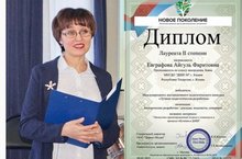 Преподаватель по классу аккордеона, баяна МБУДО "ДШИ №10" Евграфова Айгуль Фаритовна стала победителем в Международном дистанционном педагогическом конкурсе "Лучшая педагогическая разработка" (г.Москва) в номинации: методические разработки / доклады, педсоветы, семинары, завоевав диплом лауреата 2 степени. Поздравляем Айгуль Фаритовну и желаем дальнейших профессиональных достижений. Администрация школы выражает благодарность Евграфовой Айгуль Фаритовне за труд.