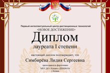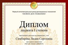В городе Москва проходил Всероссийский педагогический конкурс «Лучшая педагогическая разработка». В номинации «Методические разработки педагога» с конкурсной работой «Работа концертмейстера в классе духовых инструментов», приняла участие преподаватель фортепианного отделения МБУДО "Детская школа искусств №10" г. Казани, Симбирёва Лидия Сергеевна. На конкурсе Лидия Сергеевна завоевала диплом лауреата 1 степени. Администрация школы поздравляет Лидию Сергеевну с победой и благодарит за труд.
