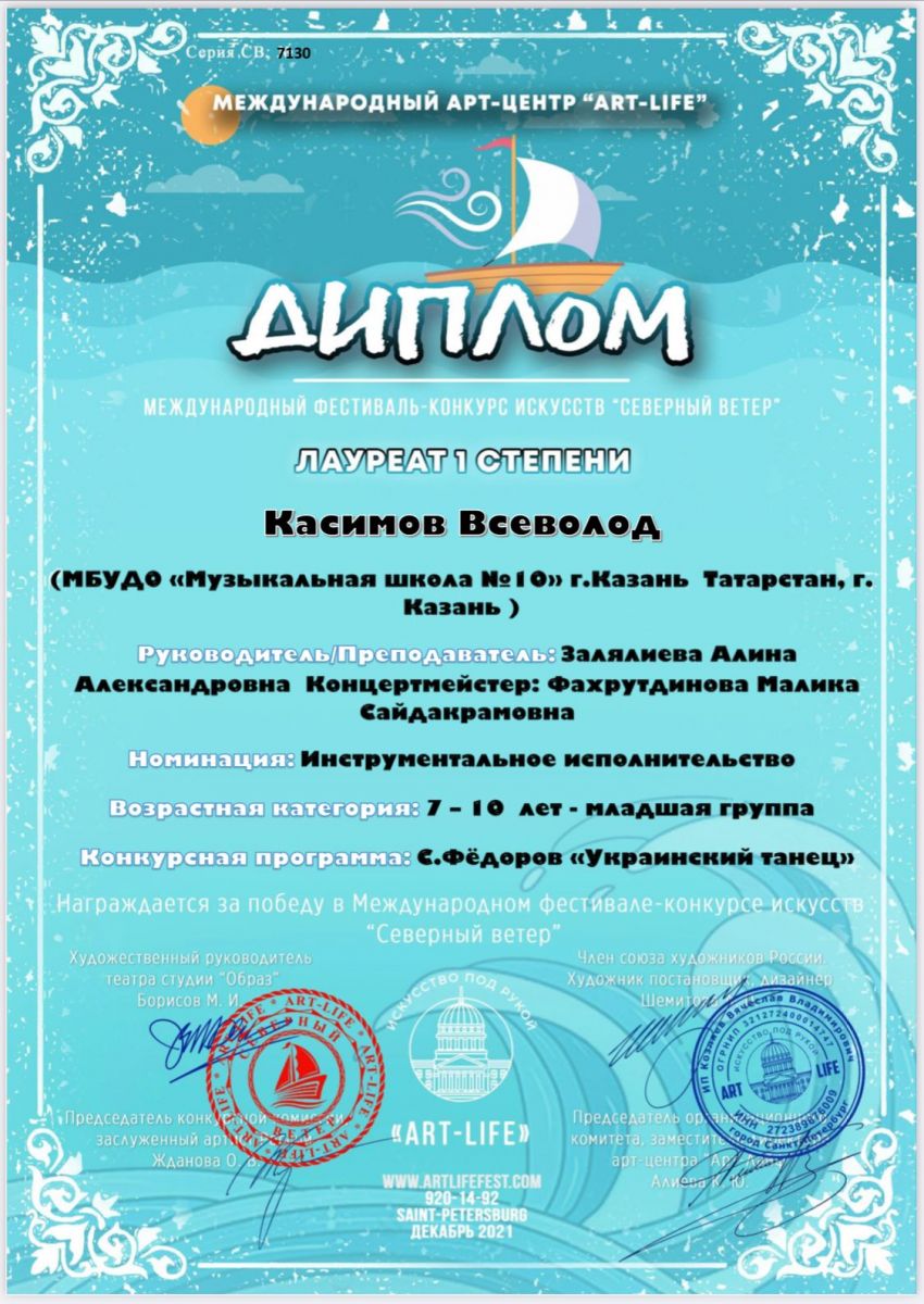-Касимов Всеволод-лауреат 1степени.Смотреть диплом