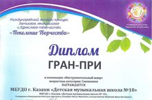 ГРАН - ПРИ награждается "ДМШ № 10" в номинации инструментальный жанр