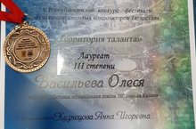 Сегодня в КЦ "Залесный" проходил V Республиканский конкурс - фестиваль музыки современных композиторов Татарстана "Территория таланта", в котором приняла участие учащаяся фортепианного отделения Васильева Олеся, класс преподавателя Кузнецовой Анны Игоревны. Поздравляем Олесю с успешным выступлением!!!