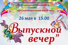 26 мая в 15.00 в актовом зале Детской музыкальной школы № 10 состоялся выпускной вечер - самый долгожданный и замечательный праздник. В программу включены торжественная часть, вручение свидетельств, концертные выступления, капустник. С поздравлениями к выпускникам и родителям выступила директор школы Кузнецова А.И. Выпускной вечер прошел в теплой, дружественной атмосфере.