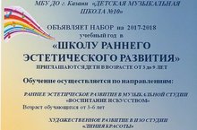 МБУДО г. Казани "Детская музыкальная школа №10" (пос. Юдино, ул. Революционная, д. 49, тел. 294-33-27)объявляет набор на 2017-2018 учебный год в "ШКОЛУ РАННЕГО ЭСТЕТИЧЕСКОГО РАЗВИТИЯ". Приглашаются дети в возрасте от 3 до 9 лет.