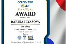 Преподаватель ДХШ № 3 им.Б.М.Альменова Ильясова Дарина Даудовна заняла I место в фестивале искусств Golden Time Season 17 Paris в номинации Paiting.