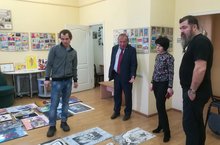 Директор школы познакомила Главу района с выставкой художника Б.М. Альменова "Помнить долго и с уважением...", посвященную 110-летию со дня рождения художника и ознакомила с музейным уголком, отражающим жизненный путь и творчество художника.