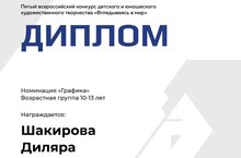 Учащиеся "ДХШ №3 им.Б.М.Альменова" г.Казани были награждены дипломом об участии в межрегиональной академической выставке "Идель-Арт 2024" проходящей в залах "Хазинэ" г.Казани с 16 апреля 24г по 30 мая 24г.