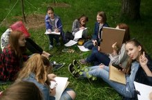 Детям предлагается выполнить творческую работу с выбором темы. Ребята должны показать способности к фантазии и интересному раскрытию выбранной темы (композиция в цвете). Используемые материалы: бумага формата А3, набор карандашей «Конструктор» или «KOH- I- NOOR», ластик, зажимы для планшета ширина 5 см (4 шт.), кисти беличьи №5, №8, краски: акварель или гуашь, салфетка для рук, баночка для воды.