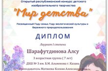 Наивысшей оценки добились учащиеся "ДХШ №3 им.Б.М.Альменова" в Открытом республиканском конкурсе детского изобразительного творчества "Мир детства". Поздравляем лауреата с дипломом I степени!