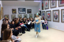 20 февраля 2014 г. ученики 2 "Б" (преп. Биктагирова Р.Р.) и 3 "Б" (преп. Хисматова А.Р.) классов посетили Государственный музей изобразительных искусств Республики Татарстан, в котором было проведено интерактивное занятие с фондовым показом "Влюбленный художник".