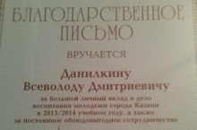 Большой личный вклад в воспитание молодежи 14.05.2014
