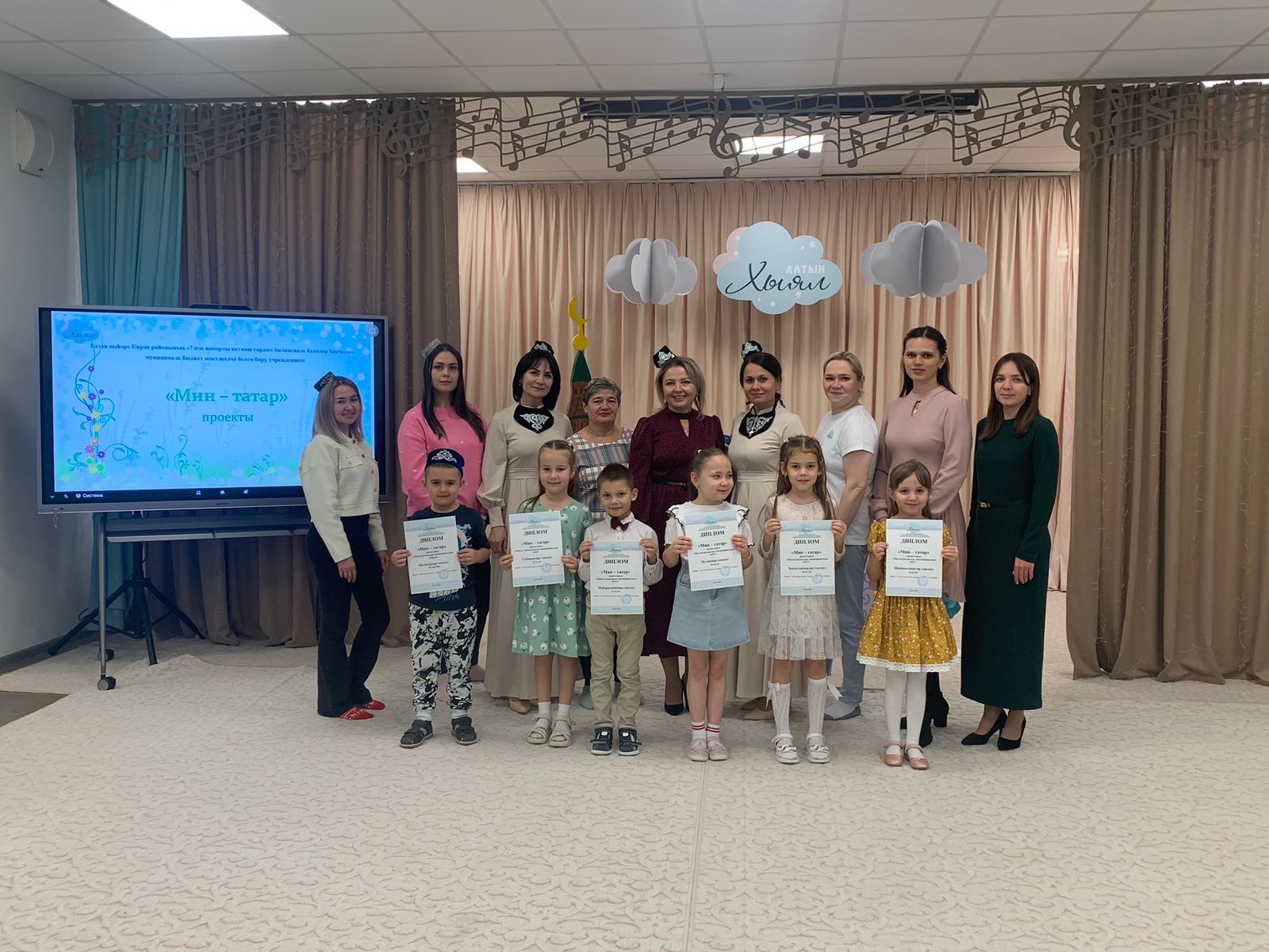 Сегодня подвели итоги проекта "Мин - татар", в котором приняли участие татароязычные семьи. Они на протяжении всего проекта снимали интересное видео по темам "Колыбельные песни", "Татарские национальные блюда", "Сундук моей бабушки". Каждая семья была награждена дипломами.
