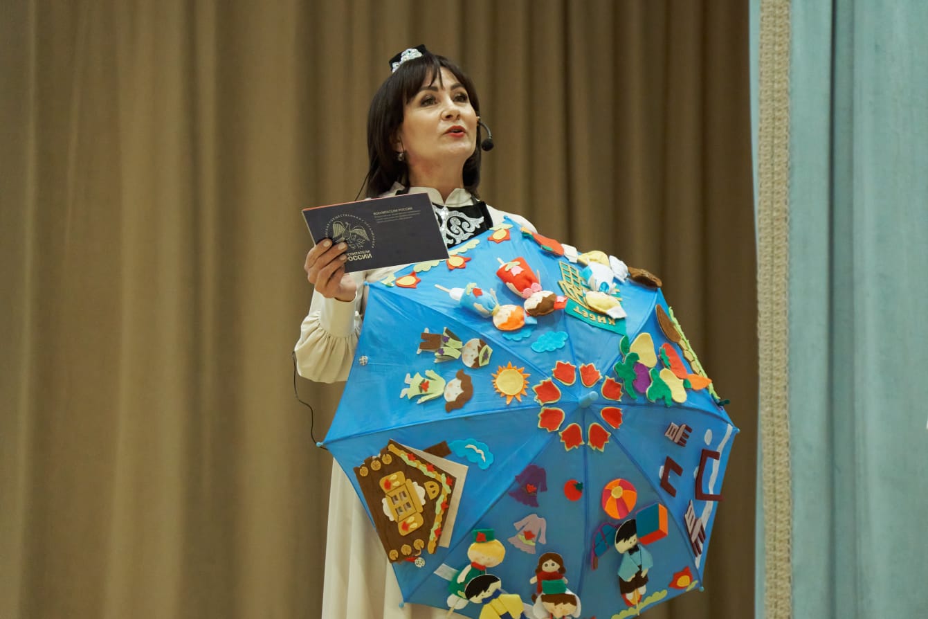 Сегодня воспитатель по обучению детей татарскому языку Гатауллина Гульнара Равилевна приняла участие во Всероссийской онлайн-конференции по художественно-эстетическому развитию "В авангарде детства. Казань". Она представила вниманию аудитории авторское пособие "Волшебные зонтики" и рассказала о том, как играя можно обучать детей дошкольного возраста татарскому языку.