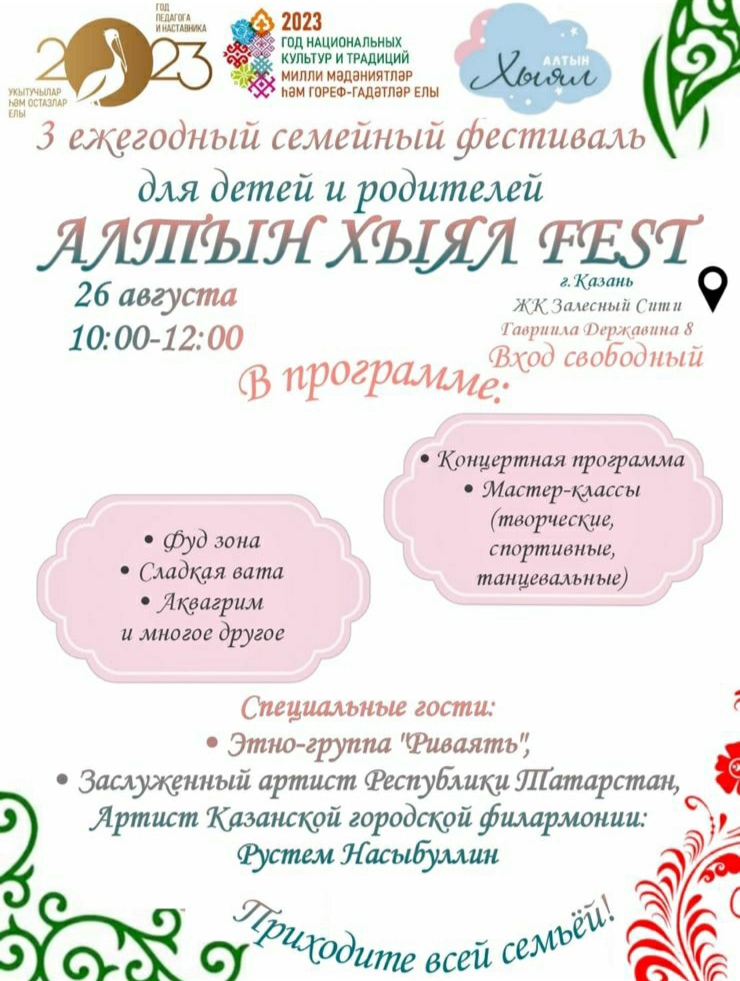 В Республике Татарстан, 2023 год был объявлен Годом национальных культур и традиций, а в России годом педагога и наставника, поэтому эти 2 темы проходили красной нитью на всех площадках нашего фестиваля в этом году.