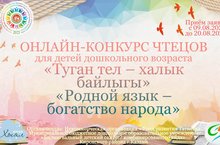 С 9 по 20 августа на базе нашего детского сада проводится республиканский онлайн-конкурс чтецов для детей дошкольного возраста «Туган тел- халык байлыгы» «Родной язык-богатство народа» совместно с НКО «Фонд развития Татнета» .
