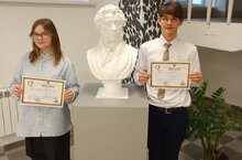 27 января состоялся финал XIII республиканской научно-практической конференции "Онегинские чтения", которая проводится в лицее №9 имени А.С.Пушкина г.Зеленодольска. В этом году конференция была посвящена 190-летию первого издания романа в стихах "Евгений Онегин", а гостеприимный Пушкинский лицей встречал гостей не только из самых разных уголков Татарстана, но и Петербурга и Дагестана. Сообщаем, что гимназисты под руководством учителя русского языка и литературы Л.Р.Валеевой порадовали высокими достижениями: ученица 10А Анжела Чуктиева завоевала II место в секции "Роман "Евгений Онегин" - энциклопедия русской жизни", а ученик 8В Руслан Тарасов добился II места в секции "Исторические темы, эпохи, герои в произведениях А.С.Пушкина". Отметим, что секции, в которых выступили наши ребята, стали самыми популярными. Поздравляем и желаем новых побед!