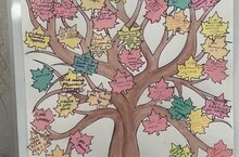 с ветками и листочки из цветной бумаги. Каждый участник может написать пожелание своему учителю на листочке и приклеить к дереву. Также была организована выставка рисунков и поделок. -