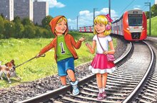 тормозной путь локомотива составляет от 700 до 1200 метров. Переходите через железнодорожные пути только в установленных местах, не перебегайте их перед движущимся поездом.