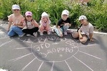 Одним из самых интереснейших детских летних развлечений является рисование на асфальте!Сегодня мы провели конкурс рисунков на асфальте «Мы за ЗОЖ!» с целью пропаганды среди детей здорового и безопасного образа жизни. В конкурсе приняли участие все группы, которые с большим интересом рисовали мелками всё, что связано со здоровым образом жизни.