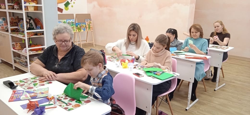 Опубликовано: 26.11.2023В студии дизайна "Радуга" под руководством Минеевой Светланы Юрьевны прошел мастер-класс по оригами поделкам с участием мам и бабушек. Дети с любовью сложили из бумаги букеты ярких цветов в подарок и научили родителей делать интересные бумажные игрушки.