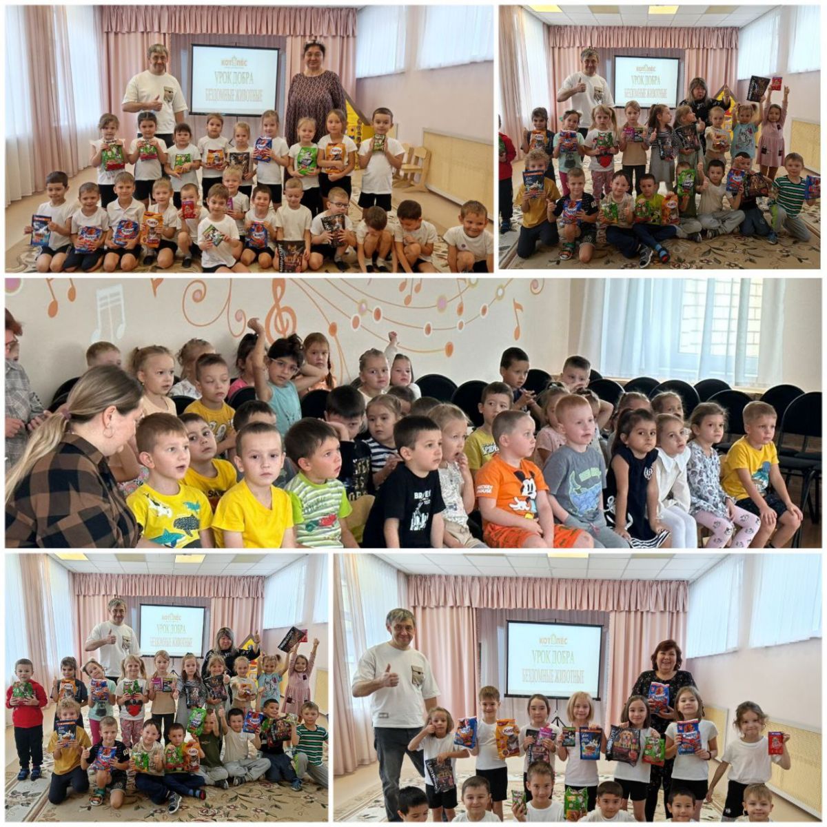 В нашем детском саду директор приюта для бездомных животных «Кот и пёс» провёл Уроки добра. Ребята после встречи передали корма для животных, которые были собраны в рамках акции «Большая помощь маленькому другу!»