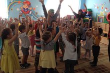Сегодня в детском саду поздравили детей летних именинников. К ним в гости прилетел Карлосон и сыграл с ними в забавные игры. Каждый из именинников получил подарок.