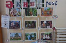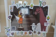 На этой неделе в нашем детском саду стартовал детско-родительский проект "Әкиятfest"приуроченный к году родных языков. Проект представляет собой напольное табло с девятью слайдами татарских народных и авторских сказок. Края каждого слайда имеют клейкую основу и QR-коды. Родителям и воспитанникам предлагается отсканировать QR-коды, посмотреть мультфильм (язык по выбору: татарский, русский, английский), прикрепить на липкую рамку лайк в виде прямоугольника с татарским народным орнаментом. Количество просмотренных мультфильмов не оговаривается. По желанию можно посмотреть все. По завершению проекта проходит подсчет лайков и выявляется мультфильм-победитель, собравший больше всего голосов-орнаментов. Дети всех возрастных групп просматривают мультфильм-победитель и делают рисунки (аппликации, групповое панно и т.д. на выбор).