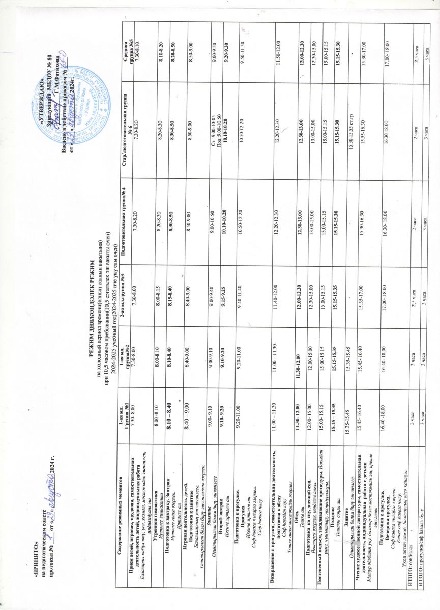Режим дня 2024-2025 учебный год (холодный период)