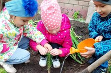 Воспитанники старшей группы № 3 вместе с воспитателями высадили саженцы деревьев на территории детского сада.