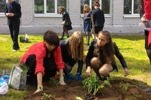 учащиеся школы сегодня вышли на экологический десант, вместе с педагогами занимались озеленением пришкольной территории