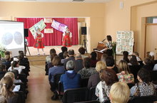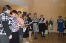 С юбилеем 55 лет поздравляли сегодня учителя начальных классов Яшагину Ольгу Александровну. Замечательного, добродушного педагога пришли поздравить ученики и выпускники разных лет. Все поздравления для любимого учителя были музыкальными и даже баба Яга поздравила Ольгу. Коллеги поздравили юбиляршу частушками.
