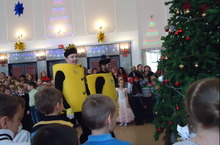 Ученики всей начальной школы 1-4 классов побывали на сказочном представлении в ДК ОАО КВЗ. Захватывающий сюжет сказки и огромный хоровод вокруг ёлки оставили замечательные впечатления и восторг у школьников.