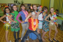 Вечеринку в гавайском стиле устроили учащиеся 5 классов перед началом каникул. Они не только подобрали соответствующие костюмы, но и придумали конкурсы и атрибуты по данной тематике. Девочки исполнили танец "Алоха", а мальчики выбрали королеву гавайской вечеринки. Завершилось все чаепитием и головокружительными танцами.