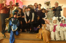Сегодня ученики поздравляли с юбилеем учителя начальных классов Хузиеву Альфию Абдулловну. Они приготовили ей концертную программу, сюрпризом для всех стал торт с человеческий рост, который не только ходил, но и поздравил юбиляршу. На поздравительном концерте присутствовали и её выпускники разных лет.