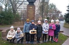 Готовимся встречать зиму. Так как у нас в микрорайоне два парка, ребята из начальной школы украсили сегодня кормушками и сквер Н. Г. Столярова. Теперь мы надеемся что все жители Адмиралтейской слободы будут подкармливать птиц зимой и наши кормушки не будут пустыми.
