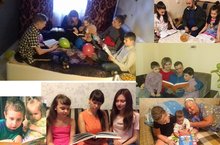 Фотовыставка "Мы читаем всей семьей". Ребята не только принесли фотографии своей читающей семьи, но и книги, которые они решили подарить подросткам в детский дом.
