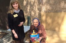 Вручение открыток и подарков вдовам и труженикам тыла микрорайона Адмиралтейская слобода.