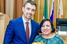 Глава администрации Кировского и Московского районов г. Казани Дамир Фаттахов вручил почетную грамоту "За многолетний плодотворный труд в системе образования, большой вклад в воспитание подрастающего поколения" директору нашей школы Лилие Хасановой.