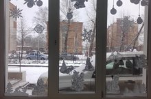 Школа готова встречать новый год. Разноцветные узоры, шары и животные украсили школьные окна. Самым лучшим узором признан незаминимый белый, настоящий новогодний узор. Оформленные в стиле морозных, окна 5а класса, как никогда актуальны в эту теплую зиму.