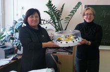 С праздником учителей нашей школы сегодня поздравили депутаты партии Единая Россия. Большой, праздничный торт поднял праздничное настроение всем педагогам школы.