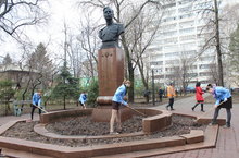 Сегодня активисты ДО "КОПИ" наводили порядок в сквере Н.Г. Столярова. Ребята собирали листья и мусор, готовили клумбы к посадке цветов. Уборка проходила в рамках субботников и проекта "Улица имени Героев", совместно с Горводзеленхозом г. Казани. Они любезно предоставили поливочную машину с помощью которой вымыли мемориальный бюст Столярова и прилигающую к нему территорию, а так же грабли, лопаты и метла.