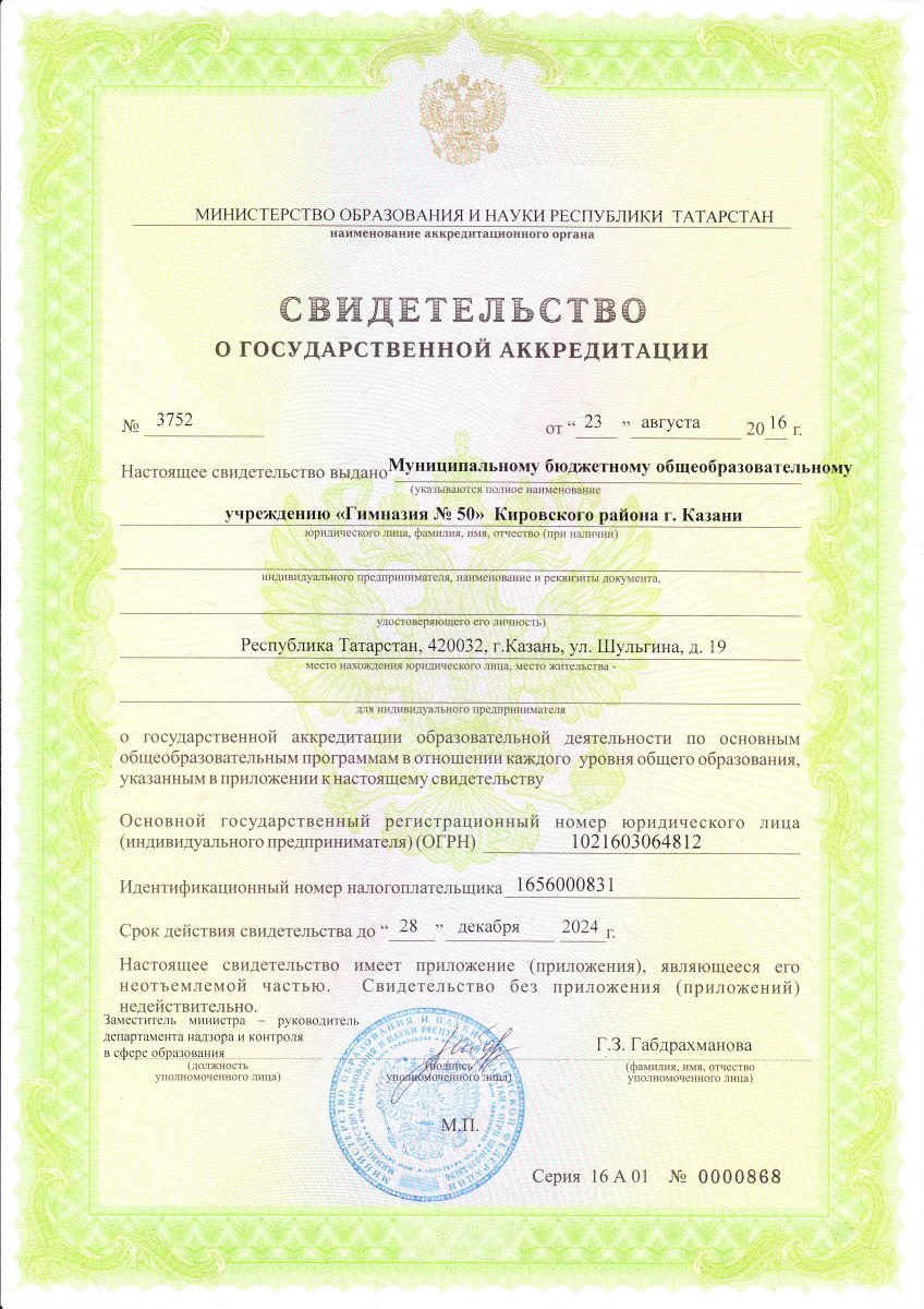 Муниципальное бюджетное общеобразовательное учреждение «Гимназия №50» Кировского района г. Казани