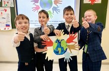 На ладошках-листочках наши ученики рассказали о добрых делах -