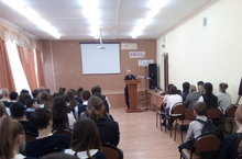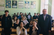Урок мужества. 21.02.2019 21 февраля в школе представители войсковой части 5561 провели "Урок мужества". Перед старшеклассниками выступили заместитель командира взвода ст.сержант Булычев Александр Олегович и ЗКР по РЛС ст.лейтенант Карабеков Руслан Омарович. Они рассказали ребятам о службе в Росгвардии и ответили на вопросы. Ребята поздравили гостей с днем Защитника Отечества.