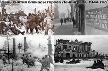 «День Воинской Славы 27 января – День снятия блокады с города Ленинграда». Наступление фашистских войск на Ленинград (ныне Санкт-Петербург),захвату которого германское командование придавало важное стратегическое и политическое значение, началось 10 июля 1941 г. Военная блокада города Ленинграда длилась с 8 сентября 1941 года по 27 января 1944 года и стала жестоким испытанием для жителей города. На момент блокады в городе находилось 2,5 млн. жителей.Первая зима блокады стала самой тяжелой. Для рабочих норма хлеба составляла только 250 г., для всех остальных – служащих, детей, иждивенцев – меньше в 2 раза.Доставка некоторого количества продовольствия стала возможна только после того, как на Ладоге установился лед. Эта ледовая трасса стала для ленинградцев Дорогой Жизни. Часть жителей, около 500 тыс. была эвакуирована по льду. Блокада Ленинграда длилась 900 дней и стала самой кровопролитной блокадой в истории человечества. Историческое значение обороны Ленинграда огромно. Советские воины остановив вражеские полчища под Ленинградом, превратили его в мощный бастион всего советско-германского фронта на северо-западе. Сковывая значительные силы фашистских войск на протяжении 900 дней, Ленинград тем самым оказал существенную помощь развитию операций на всех других участках обширного фронта. В победах под Москвой и Сталинградом, под Курском и на Днепре - весомая доля защитников Ленинграда. За мужество, стойкость и невиданный героизм в дни тяжелой борьбы с немецко-фашистскими захватчиками город Ленинград 20 января 1945 г. был награжден орденом Ленина, а 8 мая 1965 г. получил почетное звание "Город-Герой".